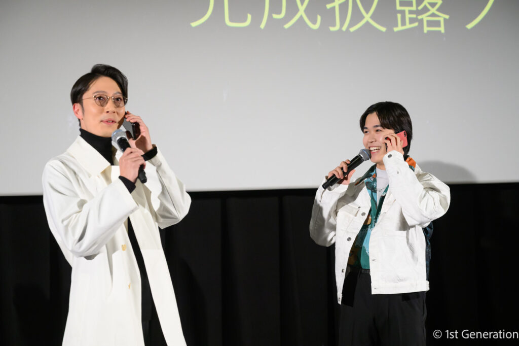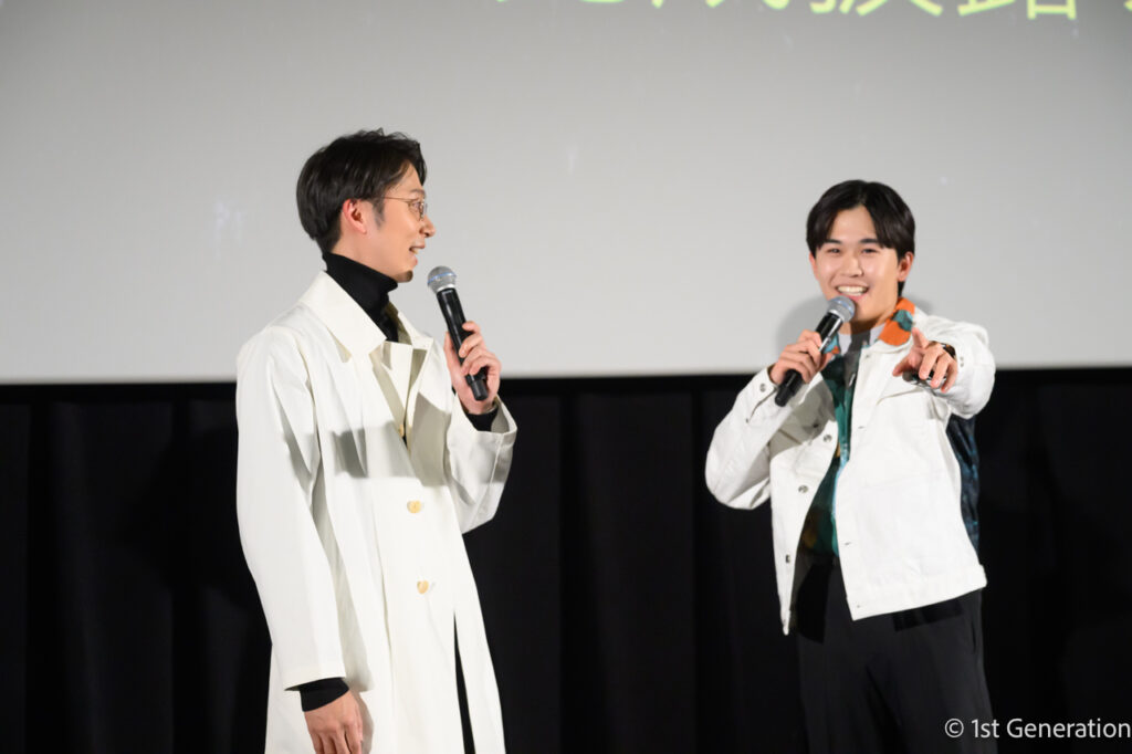 鈴木と金田の共演は2015年の映画以来11年ぶりとなり、金田は成人した鈴木とワインで乾杯を交わしたエピソードを披露して会場の笑いを誘った。撮影現場では金田のアドリブも多く採用され、現場で愛用していた電子タバコがそのまま劇中で使用されるなど、役柄へのこだわりも語られた。