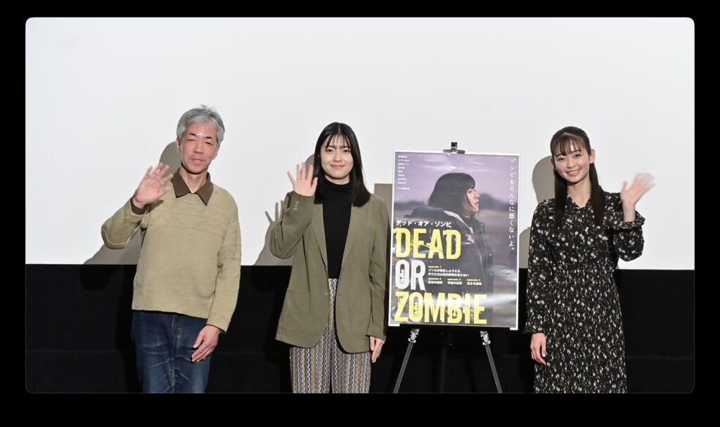2月21日(土)、東京・新宿K’s cinemaにて映画『DEAD OR ZOMBIE』の初日舞台挨拶が行われ、主演の倉島颯良、共演の涼井菜生、佐藤智也監督が登壇した。本作は、2022年に公開された短編映画に前日譚と後日譚を加え、4つのエピソードから成る1本の長編として再構築された異色のゾンビ映画だ。「生きづらさ」を抱えた人々が、ゾンビ化によって静かなサバイバルを繰り広げる世界観について、キャスト陣が撮影の裏話を語った。