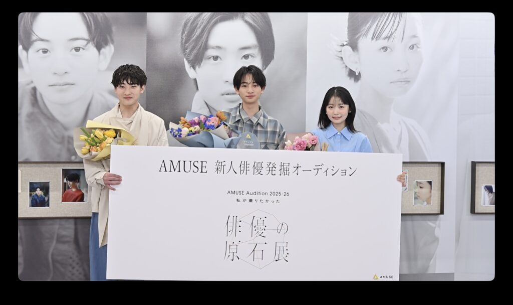 株式会社アミューズが次世代のスターを発掘するプロジェクト「AMUSE Audition 2025-26」。その最終審査の場となる「私が撮りたかった俳優の原石展」のグランプリ授賞式が2026年3月13日に開催された。全国約5000名の応募から選ばれたファイナリストの中から、宮城県出身の15歳、大友隆佑が見事グランプリの栄冠に輝いた。また、準グランプリには菊地颯一郎(17)、審査員特別賞には髙橋泉(16)がそれぞれ選出され、新たな才能の誕生に会場はあたたかい眼差しに包まれた。