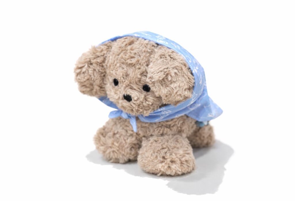 この展覧会でお披露目し、「ほぼ日曜日」のWEBショップでも販売します。また、会場のおたのしみとして、いぬのぬいぐるみのカスタマイズコーナーをつくります。アルファベットのビーズで名前の首輪をつくったり、リボンやバンダナを巻いてあげたり。じぶんだけの「わたしの犬」をおうちに連れてかえってくださいね。