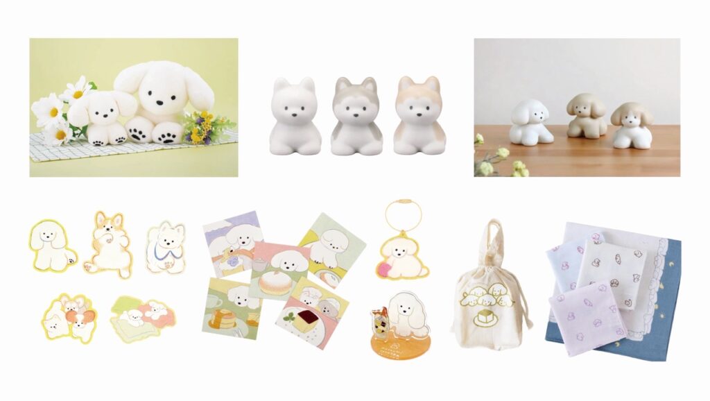 てらおかさんが描く犬はさまざまなグッズになっています。本展のショップコーナーにはできるだけ多くの商品をご用意します。日々つかえる雑貨から、お部屋に飾りたくなるもの、かわいいパッケージのお菓子や飲みものまで。お買いもので、お気に入りの「わたしの犬」を見つけてください。