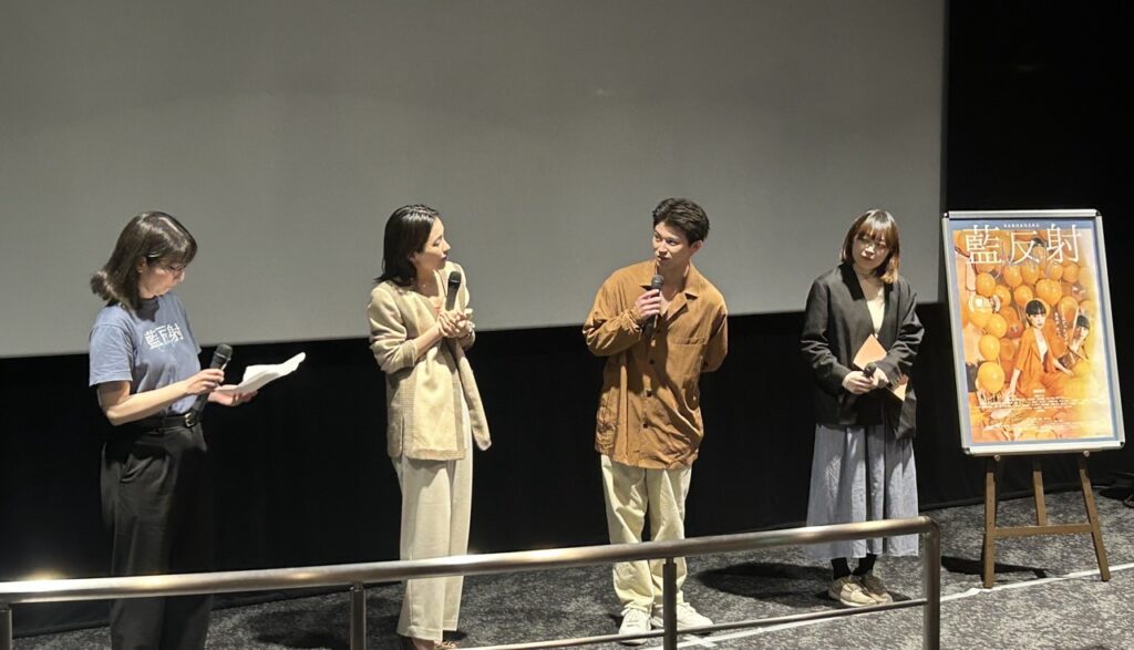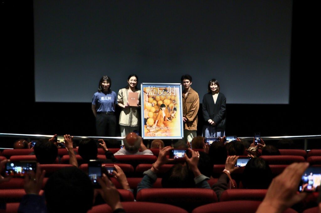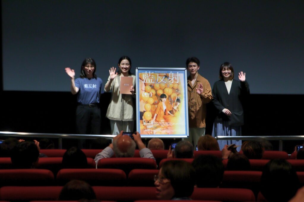 映画『藍反射』の舞台挨拶が4月5日、大阪市北区のテアトル梅田で行われた。東京での公開から約1か月を経ての関西上映となり、主演の道田里羽、出演の井上拓哉、監督の野本梢、企画・プロデュースの千種ゆり子が登壇した。本作は早発閉経や多嚢胞性卵巣症候群(PCOS)という女性の身体の悩みをテーマにしながら、人間関係のすれ違いやコミュニケーションの重要性を描いた作品である。当日は、作品に込められた強い思いや、登場人物のリアルな心理描写、そして撮影当日に結末が変更された制作の裏側などが詳細に語られた。