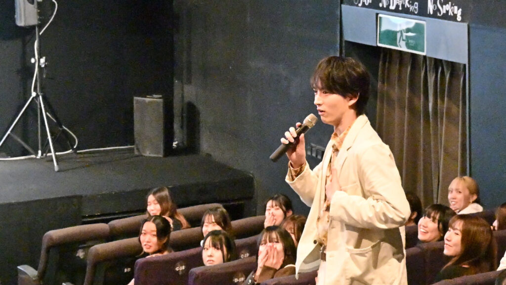トークセッションでは、まずそれぞれの役作りについて語られた。献身的で自己評価の低いヒロイン・花石しおりを演じた佐々木は、涙のシーンが多かったことに触れ、撮影序盤で役に入り込むのが難しかったものの、自身の中の悲しい感情を引き出して演じきったと振り返った。