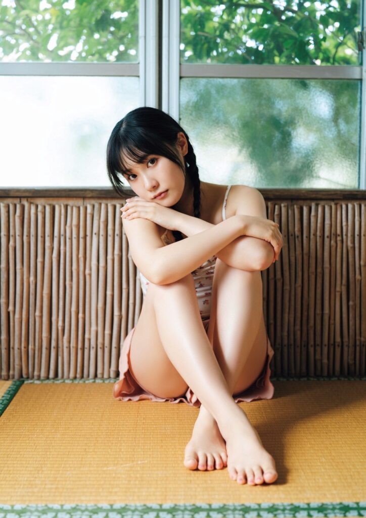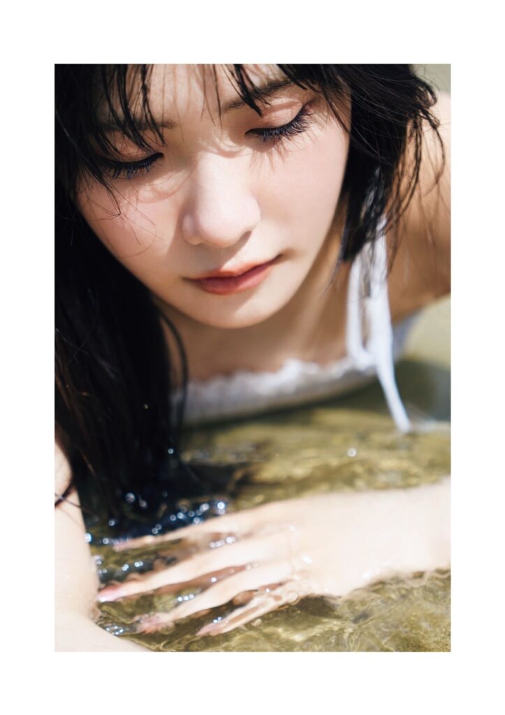 今回の撮影で一番驚いたこと、恥ずかしかったことについては、先行カットでは公開されていなかった水着での撮影を挙げた。スクール水着以外を着たのは幼稚園か中学生ぶりだったとのことで、布面積の少ない衣装での撮影に終始緊張していたという初々しい裏話も披露した。