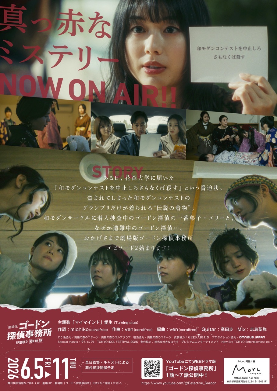 2026年6月5日より東京のMorc阿佐ヶ谷にて劇場公開される映画『劇場版「ゴードン探偵事務所」エピソード2 NOW ON AIR』について、4月26日に予告編映像が、翌27日にフライヤー裏面がそれぞれ解禁された。