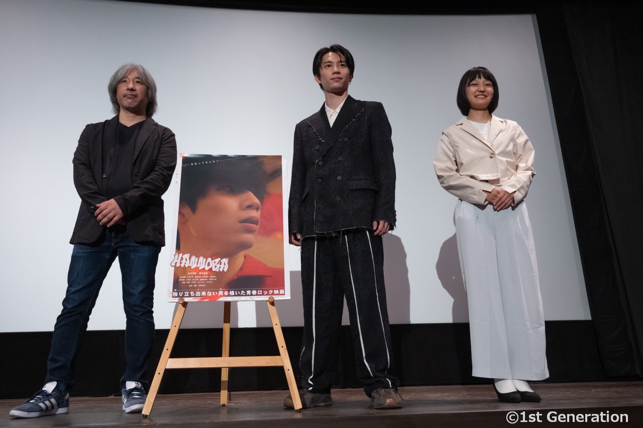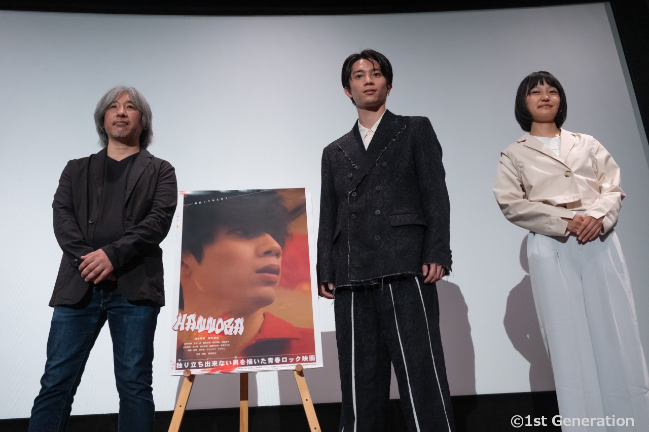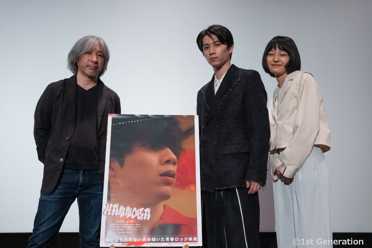 7月2日(土)、池袋シネマ・ロサにて、音楽映画『HANNORA』の初日舞台挨拶が行われた。登壇者は、田中理来(遠藤尚人役)、幡乃美帆(三井真希役)、明石和之監督の3名。本作は、青春×音楽×暴力をテーマにした独り立ちが出来ない少年(半ノラ)の物語。独り立ちが出来ない「半ノラ」の少年が自由を求め、魂の叫びと共に「ROCK」音楽そのものを映画というエンターテイメントを通して表現する。自身もロックバンドでの活動経験がある明石監督の思いに動かされ気鋭のキャスト・スタッフが集結した。