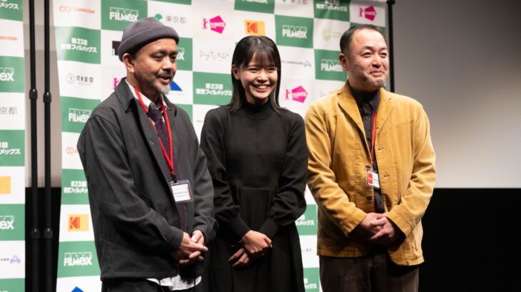 11月5日(土)、「第23回東京フィルメックス」メイド・イン・ジャパン部門の映画『彼女はなぜ、猿を逃したか?』(髙橋泉監督)の舞台挨拶が上映前に行われ、女優の藤嶋花音、髙橋泉監督、廣末哲万さんが登壇した。