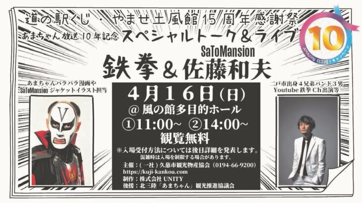 4月15日~16日開催「道の駅くじ・やませ土風館15周年感謝祭」のスペシャルイベント。
